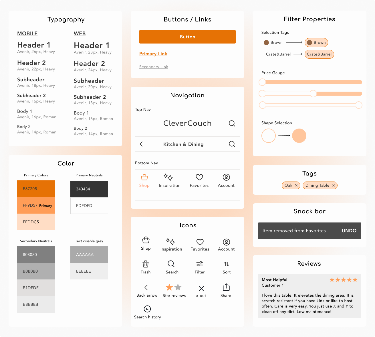 The goal was to keep it simple and straight to the point for a smooth user experience. A warm orange was chosen to express approachability deviating from a “luxurious” look that may steer some people looking for cost-friendly options away.